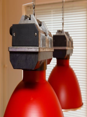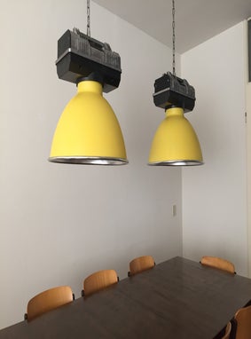 Voormalig magazijnlamp om gebouwd naar e27 fitting. Verkrijgbaar in verschillende kleuren!
